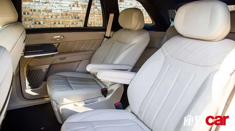 坐进车内,整体风格呈现出温馨的家居感,而非冰冷的科技舱。虽然用料相比蔚来有所克制,但大量软性材质包裹和精细的做工依然保持了高级感。它懂得把钱花在刀刃上——比如更舒适的座椅,而非华而不实的装饰。乐道L90配备同级领先的一、二排宽适座椅,加大了座椅宽度,并基于中国人体特征开发,按照脊柱自然形态进行多维度型面贴合设计。比如腰部支撑高度为更适合中国人体型的127毫米,贴合性与舒适感俱佳。二排右侧配备真零重力座椅,无需侧滑,一键即可进入零重力姿态,坐垫和靠背压力平均分布,可坐可躺可盘腿;第三排座椅同样不含糊,坐垫高度为330毫米,靠背可以实现两向电动调节,最大角度可达38°(同级最大),成年人在第三排可坐、可躺。舒适的座椅配合智慧空间,可以灵活应对不同人数不同场景的用车需求。