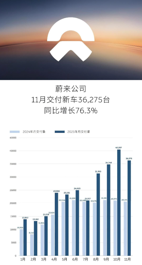 蔚来汽车则受困于高端市场的有限容量和重投入模式的财务压力。尽管蔚来通过推出乐道、萤火虫等第二、第三品牌向下探索,11月多品牌合计交付同比增长76.3%。
