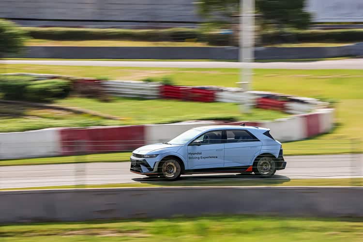 讲解完成后,在专业教练的引领下,媒体嘉宾们开启了本次速度与激情之旅。驶入赛道后,IONIQ 5 N(艾尼氪 5N)凭借N Active Sound+(N模拟声浪系统+)的逼真声浪,令试驾媒体惊艳不已。在新能源时代,N品牌电动化的诚意之作IONIQ 5 N(艾尼氪 5N)同样为驾驶者赋予了“声浪驾趣”。除此之外,嘉宾们所感受到的卓越驾驶体验,不仅源于声浪带来的感官冲击,更在于精准的操控。IONIQ 5 N(艾尼氪5 N)集成了包括一体式驱动桥(IDA)、21英寸轻质轮毂与高性能轮胎在内的多种赛用配置,在电子限滑差速器(e-LSD)与特别调校的N R-MDPS转向系统的协同下,实现了极佳的车身随动性与精准的转向反馈,在赛道上为驾驶者带来十足的操控乐趣。