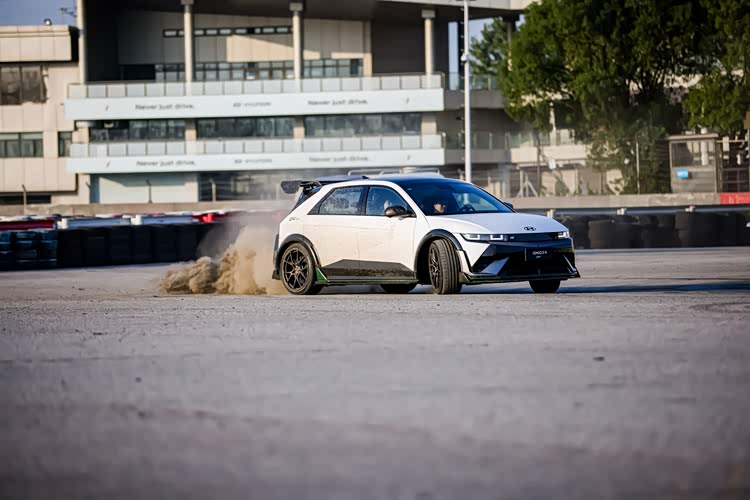 装载了DK限定版高性能套件的IONIQ 5 N(艾尼氪5N)在场地中漂移