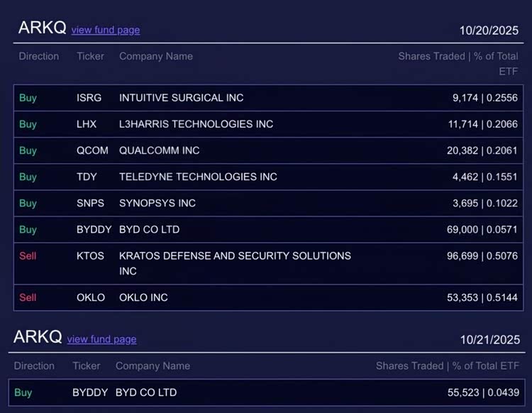 除国际投行外,以凯茜·伍德(女版巴菲特)旗下方舟投资为代表的长线资金,也在加速布局比亚迪。方舟投资在10月20日通过旗下ARKQ基金买入69000股比亚迪,10月21日再度增持55523股,这一连串的动作,充分表明了该资本对比亚迪前景的看好。
