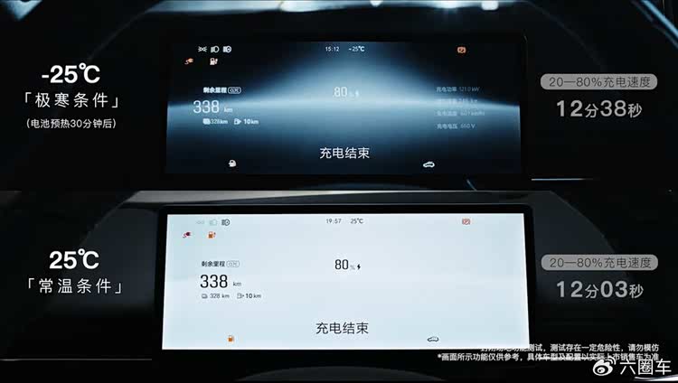 岚图追光L直接用“真实力”攻克了该用车痛点,通过一场极寒环境下的实测给出了最硬核的回应。在模拟东北冬季气候的冷冻仓中,将追光L置于零下25℃的环境里静置8小时,车身结满冰层,依然可以顺利启动。更关键的是,在如此极寒的环境下,其SOC 20%-80%充电时间仅需12分38秒,与常温条件下充电速度相差仅约30秒,彻底打破新能源车“冬天充电比等雪化还慢”的魔咒。
