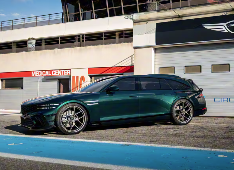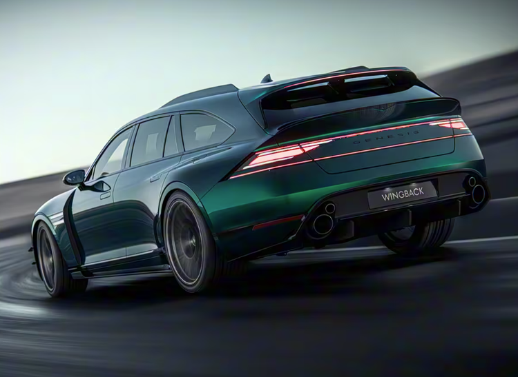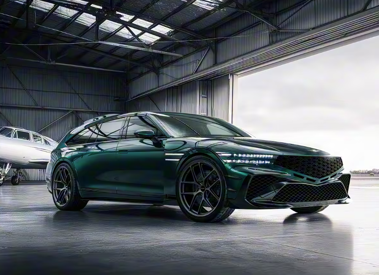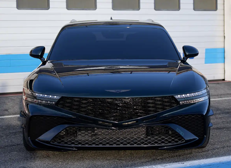 这款概念车正是这一思路下的产物,旨在探索豪华性能旅行的新方向。G90 Wingback概念车以其极低趴、修长的车身比例,融合了性能车特有的低重心与旅行车优雅舒展的线条。其前脸保留了捷尼赛思标志性的分体式双层大灯与盾形格栅,但格栅经过全面黑化并采用蜂窝网状设计,前包围两侧还设有导流槽,强化了运动气息。