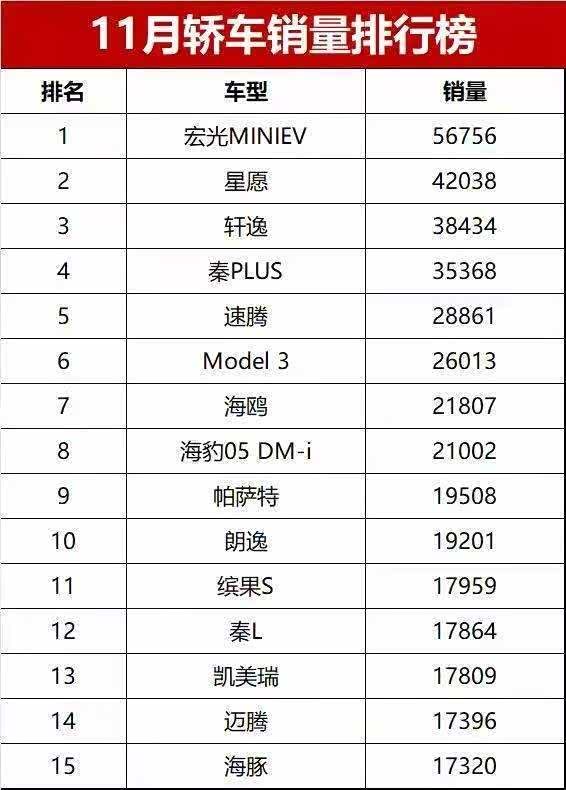 从11月轿车销量榜的排名来看,新能源车型已成为绝对主流,入门级代步车和10万级家用新能源车型是销量主力,而传统燃油车仅靠轩逸、速腾、帕萨特、朗逸等头部车型守住核心阵地。未来随着新能源渗透率的进一步提升,轿车市场的竞争将更加激烈,而产品力的持续升级和对消费需求的适配,将成为各大车企间决胜的关键。