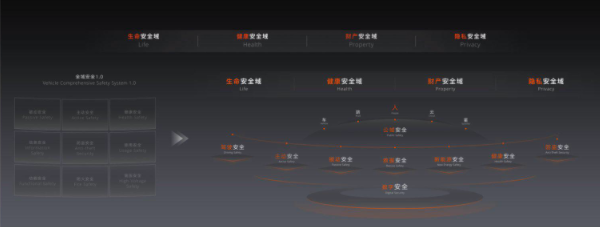 “全域安全2.0”技术体系已实现与“全域AI”的全面融合,在延续生命安全、健康安全、财产安全、隐私安全四大安全域的基础上,将九大安全系统迭代升级为驾驶安全、主动安全、被动安全、救援安全、健康安全、新能源安全、防盗安全、数字安全、公域安全。