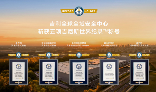 2025年12月12日,吉利全球全域安全中心正式发布,并一举创下“全球最大的汽车安全试验室”、“全球最长的室内汽车碰撞测试跑道”、“全球最大的汽车环境风洞试验室”、“全球最大的任意角度汽车碰撞测试区(0-180°)”、“全球测试功能最多的汽车安全试验室”五大吉尼斯世界纪录。同时,吉利还发布了全面融合“全域AI”进阶打造的“全域安全2.0”技术体系,并联合中国汽车技术研究中心有限公司、中国检验认证(集团)有限公司、清华大学等产学研机构发布《智能汽车全域安全发展白皮书》,以系统性规划牵引汽车全域安全技术实现跨越式发展,为推动行业共建完善的安全体系贡献智慧与力量。