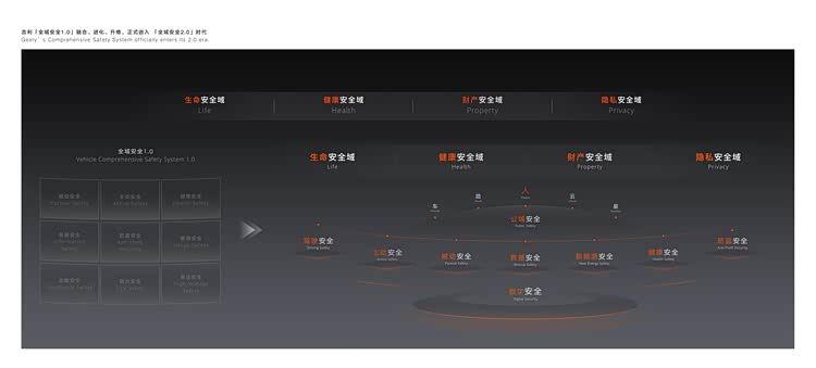 在发布安全中心的同时,吉利正式推出了全面融合“全域AI”的“全域安全2.0”技术体系。该体系秉持“以人为尊”的理念,将安全视角从传统的“整车安全”升级为“人-车-路-云-星”的生态视角,旨在贯穿用户出行全场景、覆盖全领域、联动全生态。其核心目标是逐步实现“生命零伤亡、健康零危害、财产零损失、隐私零泄露”四大安全愿景。
