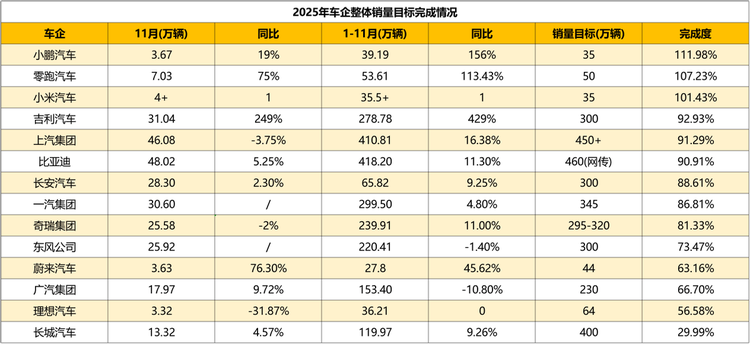 2025年还有不到20天就要落下帷幕,车企们马上就要交出期末考试成绩单了。