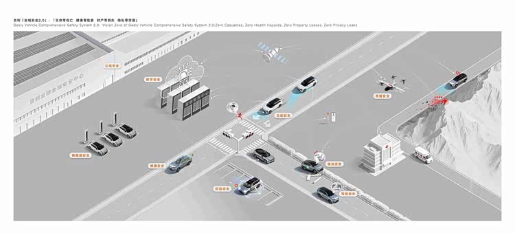 作为行业安全技术的先行者与引领者,吉利在“全域AI”技术体系的赋能下,以“AI为纲 责任为本”,基于原有的“全域安全”技术体系进阶打造“全域安全2.0”技术体系。结合智能时代的安全新需求和新挑战,“全域安全2.0”技术体系秉持“以人为尊”理念,通过技术升级、能力突破与范式创新,将侧重“整车安全”的视角升级为“人-车-路-云-星”的生态视角,旨在贯穿用户出行全场景、覆盖出行全领域、联动出行全生态;并以“生命零伤亡、健康零危害、财产零损失、隐私零泄露”四大安全愿景为指引,逐步构建的一套为消费者提供全面的安全保障技术体系。