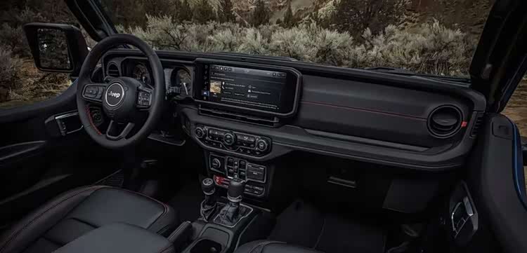 内饰方面,Jeep牧马人Whitecap以牧马人的撒哈拉和卢比肯打造,因此并没有什么改变。虽然现在也有了大屏,但看起来还是上世纪的风格,车内线条横平竖直,保留了大量的物理按键,且按键尺寸都不小,真是老司机的最爱,也十分适合越野的时候盲操。
