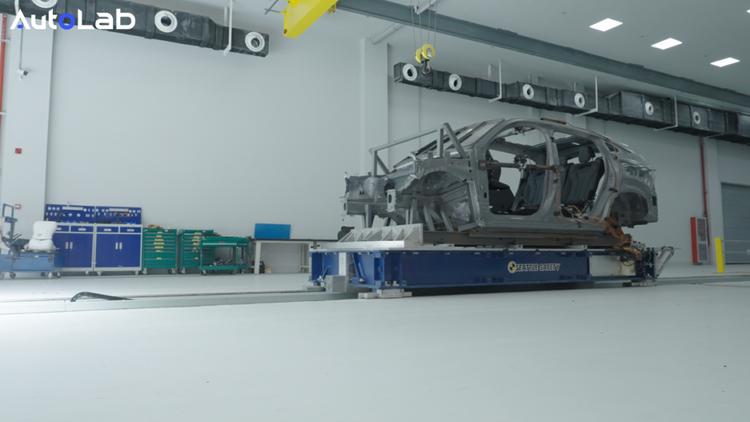 同时,吉利全域安全中心的滑台试验室还自研了全球首套AGV自动化快换系统,有两个试验台面,效率提升一倍。