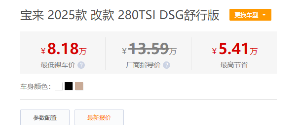 车家号·0浏览·2025-12-13 21:41 · 广东在紧凑型轿车市场竞争白热化的当下,德系经典车型 大众宝来(参数|询价)近期放出重磅优惠,最高5.41万元的降价力度让不少消费者直呼“真香”。原本官方指导价11.29万元起的宝来,部分地区优惠后起售价低至5.88万元,亲民价格瞬间点燃购车热情。