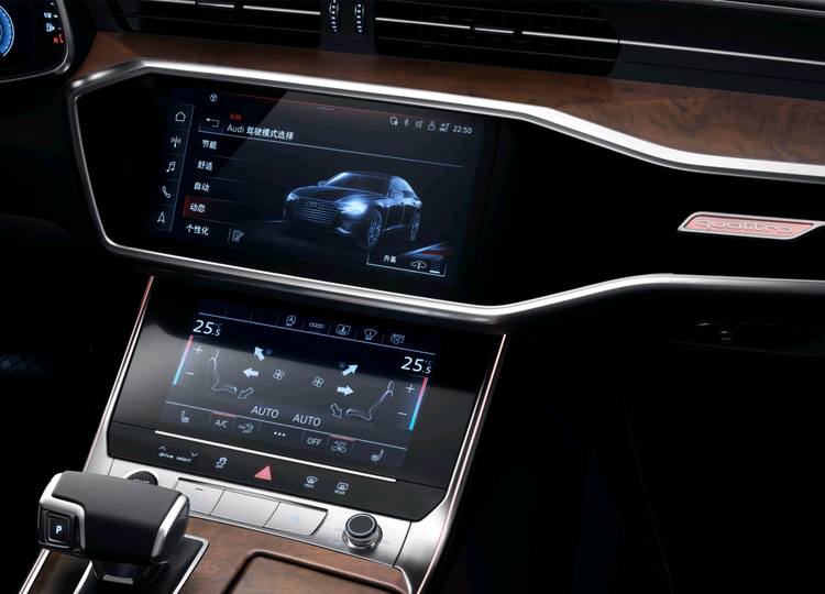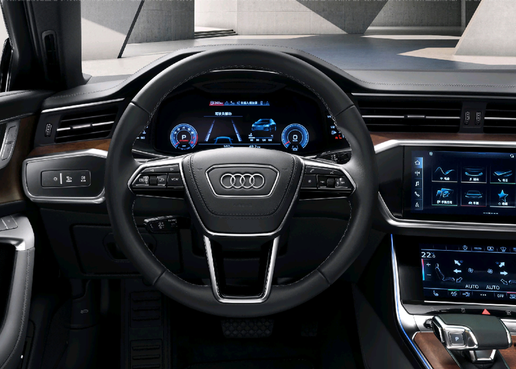 内饰和车机,那真是“一半天使一半魔鬼”。内饰用料足够高级和精致,虽然没有像国产同价位车型的用料有更高的上限,但传统豪华的木纹饰板、最低7200元选装的真皮材质,以及精工细作,虽然整体风格“过于冷淡”,但品质感对于奥迪A6L来讲,绝对不需要质疑。在车内科技氛围方面,虽然没有新能源车型的三联屏,但12.3英寸液晶仪表盘,和更有设计多边形的边框的融合,显得更具品质感。中控屏尺寸10.1英寸,数据上不大,但设计有8.6英寸的中控下屏,加上边框银色的饰条、中控屏延伸至副驾中控台的亮面饰板,让它拥有机械风和足够的科技感。