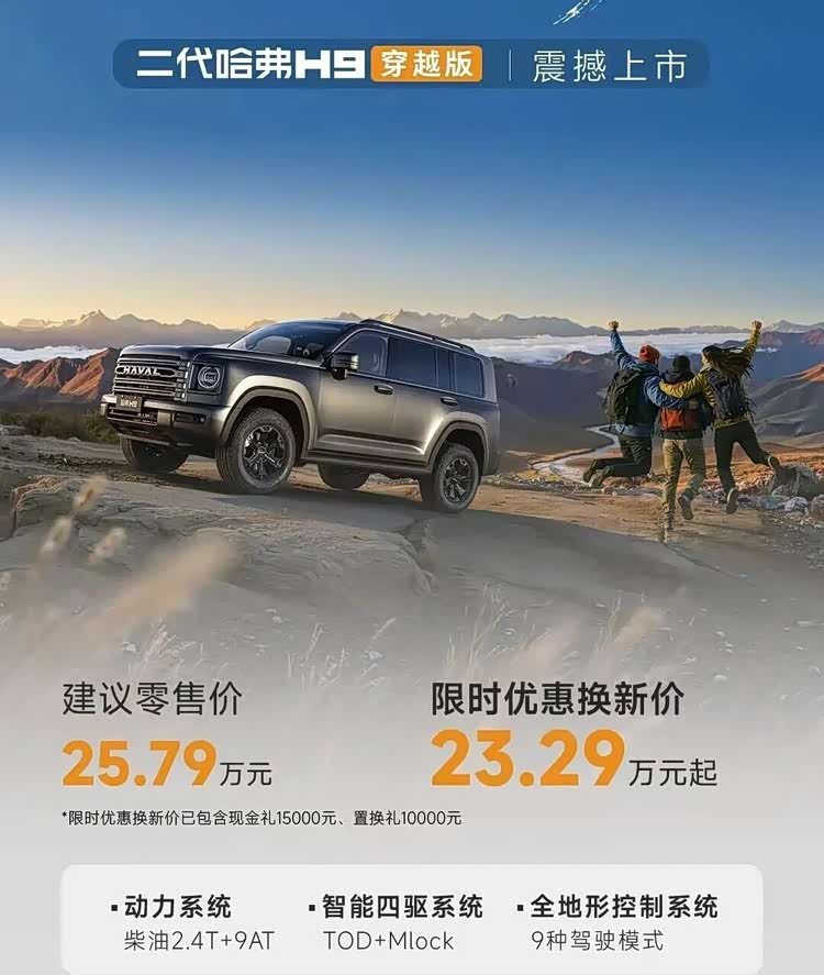 【懂车之道 产品】近日,懂车之道获悉, 长城汽车哈弗H9(参数|询价)穿越版正式发布上市,官方售价为25.79万元,限时优惠换新价23.29万元。下面,和大家起来看看新车的产品力如何?