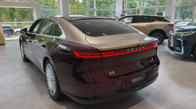 与其他车型的设计不同,岚图追光L尾部的LOGO采用小蓝色设计,还是很用心的。那它侧面的轮廓较为饱满,双腰线的勾勒也让它显得更修长,并且通过车漆带来更豪华更细腻的光泽,摸起来的手感尤为细腻。大饼的轮毂也是豪车的象征,尺寸分别为19英寸和20英寸,光看轮毂尺寸就能提升侧面行政的姿态。车顶带有黑色涂装并带激光雷达,而尾部的造型贴合整体感显得更加圆润,特别是尾灯使用线条勾勒,内置285颗独立LED灯珠组合,因此可以带来不同效果的动态,晚上开出去不仅可以保证辨识度,也能带来迎宾效果,回头率非常高。毕竟它的尺寸摆在那,空间为5125*1985*1505毫米,轴距为3010毫米。