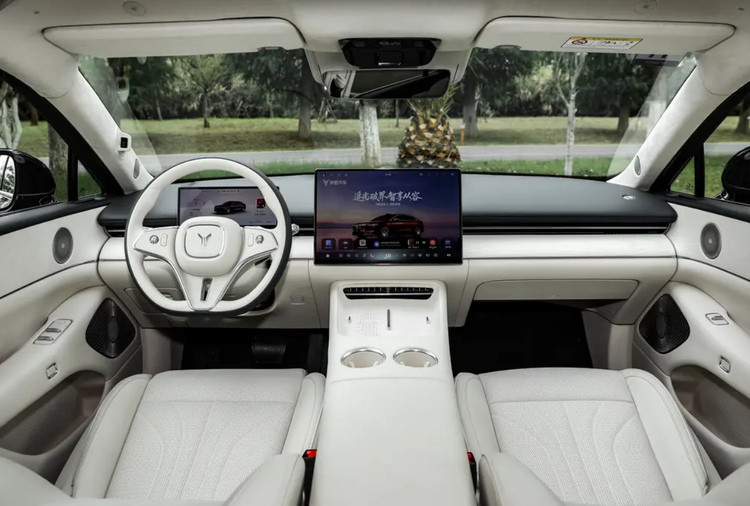 来到内饰,相比外观设计,内饰布局和设计都很一般,比较大众化,甚至有点审美疲劳。或许岚图可以借鉴一下奔驰的那种金属质感,虽然双色搭配很时尚,虽然用料很高级,但消费者看多了总会有审美疲劳的。整体内饰以居家简约的风格布局,为内饰提供更宽敞的空间视觉感。中控浮岛也采用掏空设计,下方为储物空间带USB、C型、点烟器接口,方面是双无线充带50瓦的功率,双水杯架以及宽大的扶手。内饰都真皮覆盖,摸起来质感不错,缝线工艺不错,在喇叭位置也有镀铬调节,按键也有镀铬包裹,开门方式取消传统机械门把手,使用按钮式的设计。液晶仪表标配10.25英寸、39英寸抬头显示,中控屏来到16.1英寸,搭载的是系统是HarmonyOS,华为智驾和功能性都领先其它品牌,还是比较可靠的。