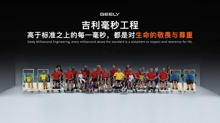 除此之外,这里还有全球首个可以实现0到180度任意角度碰撞测试的区域,以及一个具备27大类测试功能的实验室,被称为“全球测试功能最多的汽车安全实验室”。实验室里还配备了总价值超过2亿元的60多个测试假人,包括不同性别、年龄和身材的模型,其中还有吉利和湖南大学联合开发的、更符合中国人体型的特殊假人。