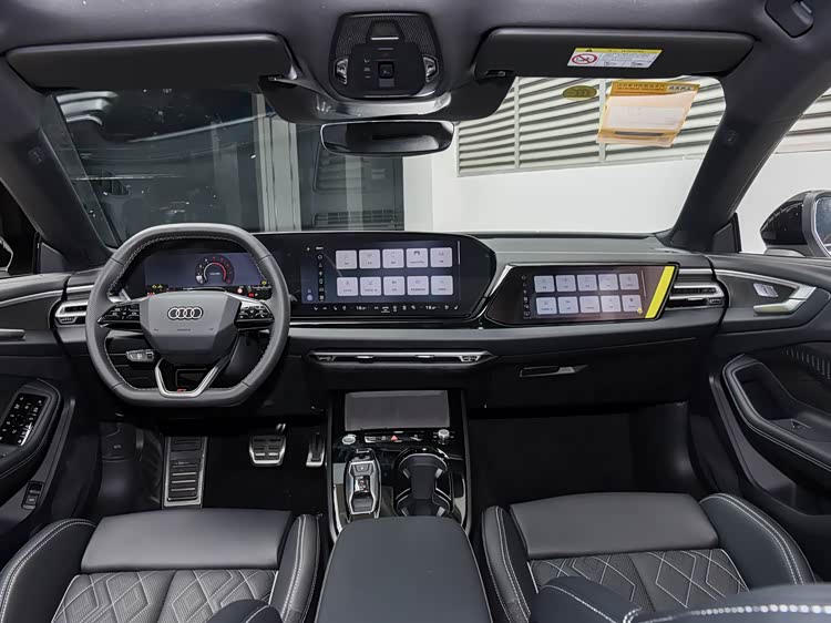 进入车内,红运限定版的内饰延续了奥迪家族的科技感布局,同时通过材质升级强化运动氛围。三幅式多功能方向盘采用 Microfiber 超纤绒包裹,触感细腻且防滑性出色,搭配碳纤维饰板与红色缝线,战斗气息扑面而来。曲面双联屏 + 副驾驶娱乐屏的三屏组合,搭配滑块式电子换挡机构,科技感拉满,支持无线 CarPlay/Android Auto 互联,操作流畅度媲美主流智能车型。空间表现方面,2922mm 超长轴距带来了充裕的后排腿部空间,实测 1.8 米乘客乘坐时膝盖仍有两拳余量,头部空间也能保证一拳左右,彻底摆脱了轿跑车型 “空间局促” 的刻板印象。后备箱常规容积表现出色,掀背式开启方式让大件物品装载更便捷,满足日常通勤与短途旅行的需求。配置上,B&O 3D 环绕音响、全景天幕、前排座椅加热等舒适性配置均未缺席,保证了豪华车型的基础体验。