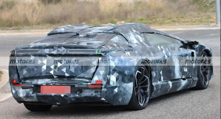 从谍照细节可见,该车配备了尺寸较大的制动盘,并搭配倍耐力P Zero系列轮胎。P Zero作为偏向公路性能的高性能胎,通常用于对抓地力与转向响应有明确要求的车型。大尺寸制动系统则意味着整车整备质量不低,同时需要匹配更高的制动热衰减控制能力,这与高功率双电机电动车的使用场景相符。结合轮胎规格与制动系统判断,Lagonda在底盘调校阶段已经考虑到电机高瞬时扭矩输出的特性。电动车在低速阶段即可释放峰值扭矩,这对轮胎附着力与悬架几何设定提出更高要求。原型车选择偏向性能取向的轮胎,也侧面说明该车未来并非单一强调舒适定位,而是需要在操控稳定性层面进行平衡。
