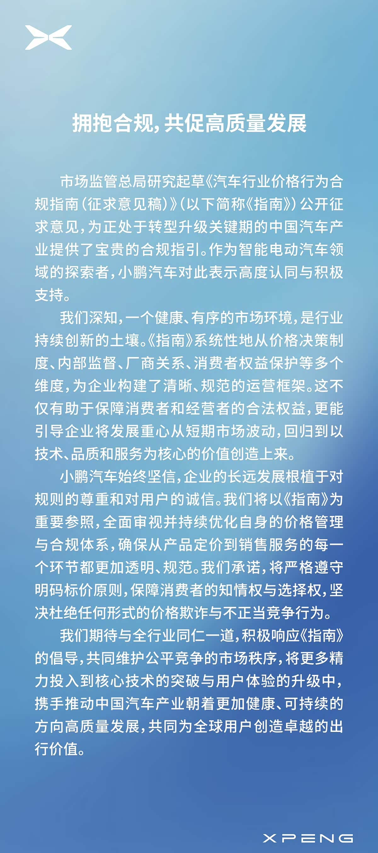 小鹏汽车则从企业诚信角度出发,指出长远发展离不开对规则的尊重和对用户的真诚。公司承诺全面审视自身价格管理与合规体系,确保从产品定价到销售服务的各个环节透明、规范。小鹏特别提到,将严格执行明码标价原则,保障消费者知情权与选择权,坚决抵制价格欺诈行为。这种回应体现了企业将用户利益置于核心位置的经营理念。