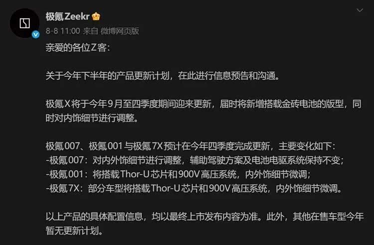 所以焕新极氪007很有可能会与焕新007GT一起发布,那么两款车一起升级智驾芯片,采用最新的英伟达THOR-U芯片也不是不可能的事情,更甚至于也有可能像焕新极氪7X一样采用更高电压平台+换电池。所以焕新版极氪007绝对值得等上一波,毕竟如果真把驾驶辅助升级也给安排上了,那么升级幅度可不是一般的大了。