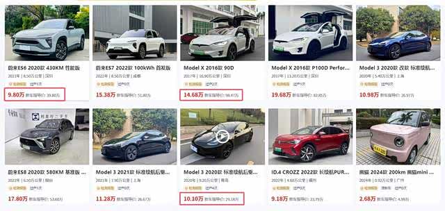 而且由于迭代速度太快,也带来了一个二手折旧率太厉害的问题,现在的电车,基本就没有不打折的,我随便去搜了一下,蔚来ES6,新车指导价39.8万,现在只要9.8万就可以带回家了,一直大吹特吹保值率高的特斯拉,ModelX指导价是98.47万,现在只要14.68万,更别提model3了,保值率更是没多少,你买新电车,势必会被背刺。