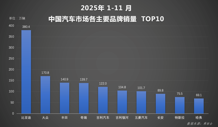 今年1-11月份,比亚迪累计销量达到了418.2万辆,同比增长11.3%,年度销量目标完成率超九成,接下来有望超额完成年度销量目标。当然了,比亚迪的这个数据表现在中国品牌乃至合资品牌当中都是首屈一指的,提前锁定冠军已经是板上钉钉,甚至它11月的单月销量比很多造车新势力的头部企业一年的销量都多,看来还真是应了那句“网上没赢过,现实没输过”的话。