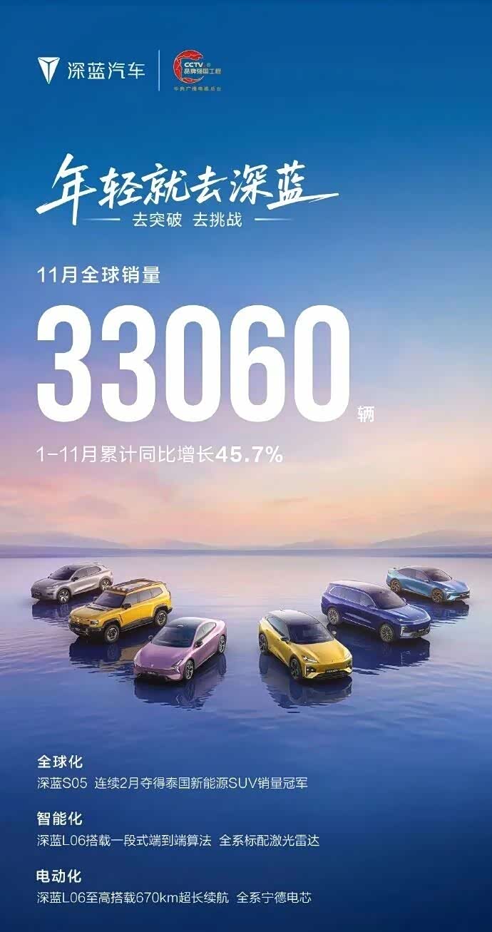 从11月的销量成绩来看,长安启源46909辆,深蓝汽车33060辆,阿维塔14057辆,三个品牌的总销量已达9.4万辆。