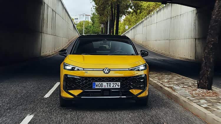 外观上,新车前脸采用最新家族风格,比途观、探岳等更运动。突出的车鼻搭配大众车标引出的贯穿灯带,连接扁平犀利的熏黑大灯组。前保险杠是大嘴格栅,长方形结构内部有特殊黑色方网填充,两侧巨大的C字形装饰条连接下方梯形下格栅,运动感十足。车身侧面,功夫黄车身搭配低矮、带跨界风格的线条,以及黑色悬浮式车顶、后视镜和轮毂等元素,尽显运动气质,符合年轻消费者喜好,在中国市场应会受欢迎。
