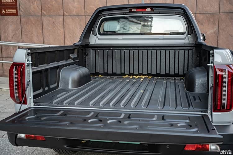悍途PHEV长箱尺寸为1810×1590×470mm,和燃油版并无差异,也没有因为动力电池的存在而侵入货箱,改变货箱形态,使用体验与燃油皮卡并无差别。在货箱细节功能上,具备独立货箱照明。