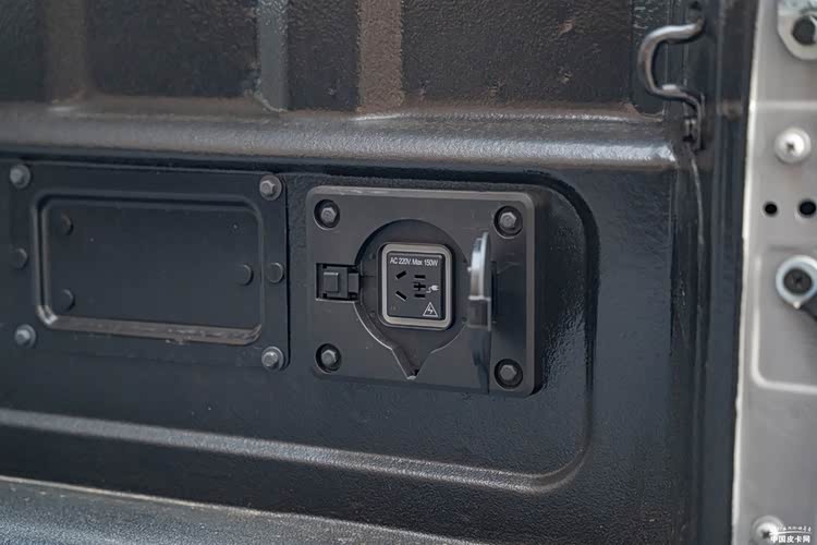因为PHEV插混带电特性,货箱内还提供了外放电接口。也可通过随车赠送的交流电插线板,从充电口反向外放电,放电能力可达到3.3kW。如果还需要更强外放电能力,则可通过直流充电口,外接逆变后可实现15kW外放电能力,完全可以满足植保无人机快速充电、野外大功率设备作业等商用场景下的用电需求。