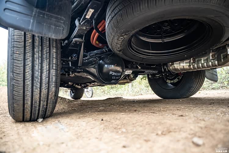 悍途PHEV的底盘调校也值得称道,不管任何配置车型,前悬均前双横臂式独立悬架。我们试驾车型为长轴长箱版本,针对载货需求,配备整体桥六片钢板弹簧悬架;同时,也可选装更为舒适的后多连杆式悬架。