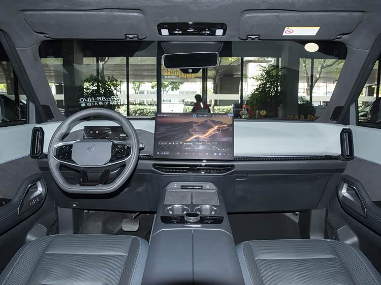 与燃油动力的福特烈马相比,福特智趣烈马部分外观细节更新应用新能源化设计,例如前脸集成可发光的“BRONCO”字母标识,前灯组内部光源也有所调整。另外,福特智趣烈马配套隐藏式门把手,硬派SUV常见的侧开式尾门及外挂式备胎设计也未有缺席。不过值得一提的是,福特智趣烈马采用承载式车身。