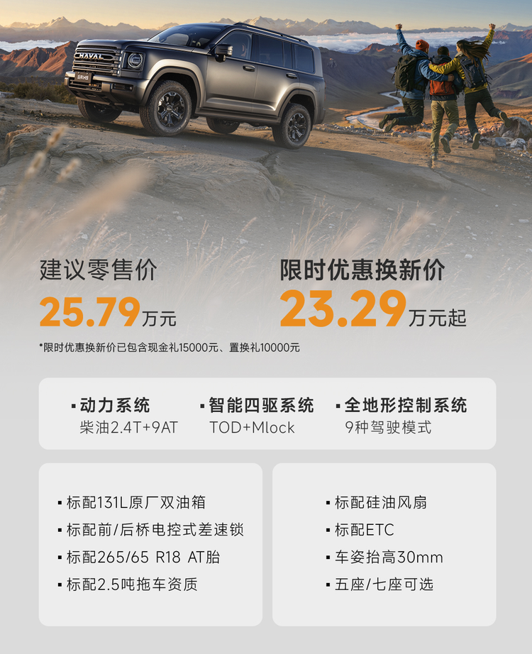 131L双油箱+2.4T柴油动力,1400公里续航告别补给焦虑