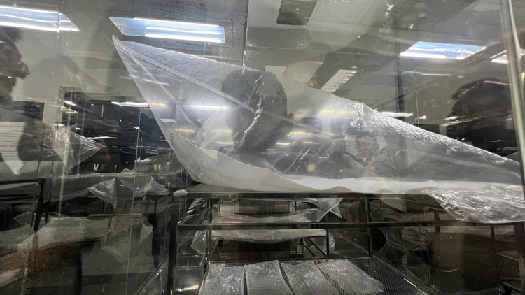 当然内饰材料纯靠人肉闻肯定还不够,在这个大实验仓中各种内饰材料被封在大塑料袋里进行65℃的长时间烘烤,然后再用各种仪器检测塑料袋里材料散发出来的物质和气味。实验室的工作人员告诉我其中最大的塑料袋要3000块一个,而且只能使用5次,因为它本身的性质要足够稳定,否则的话就会影响实验结果。