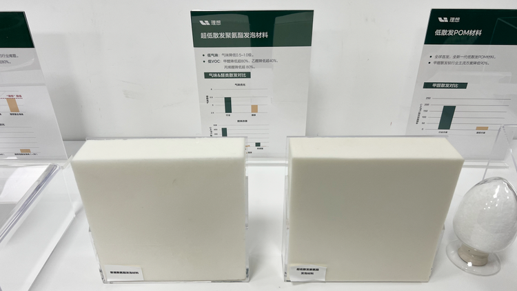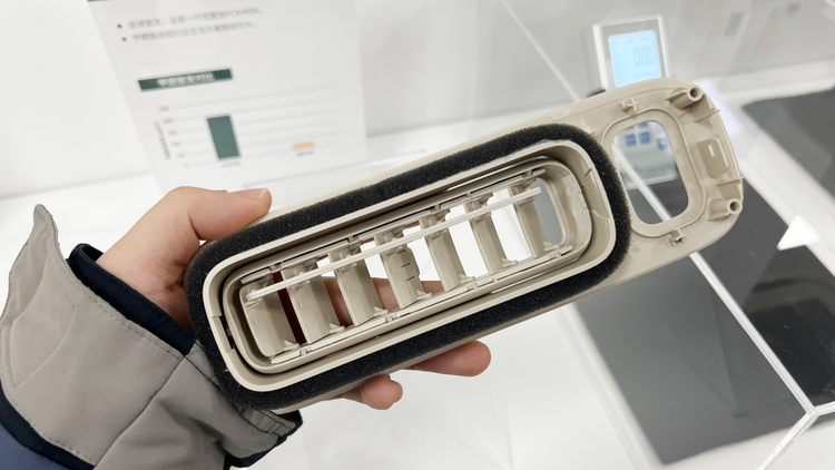 我说的出风口就是我手上拿的这个,它是 理想i8(参数|询价)的后排顶棚出风口。在汽车行业中,空调出风口的材料一般都是耐磨耐用的FOM(聚甲醛),这种材料在高温下会散发微量甲醛,虽说这点甲醛在整个座舱中的浓度微乎其微,也完全符合国家标准,但理想的工程师对此并不满意,所以他们和行业材料巨头深度合作,量身定制了这款低散发的POM材料。