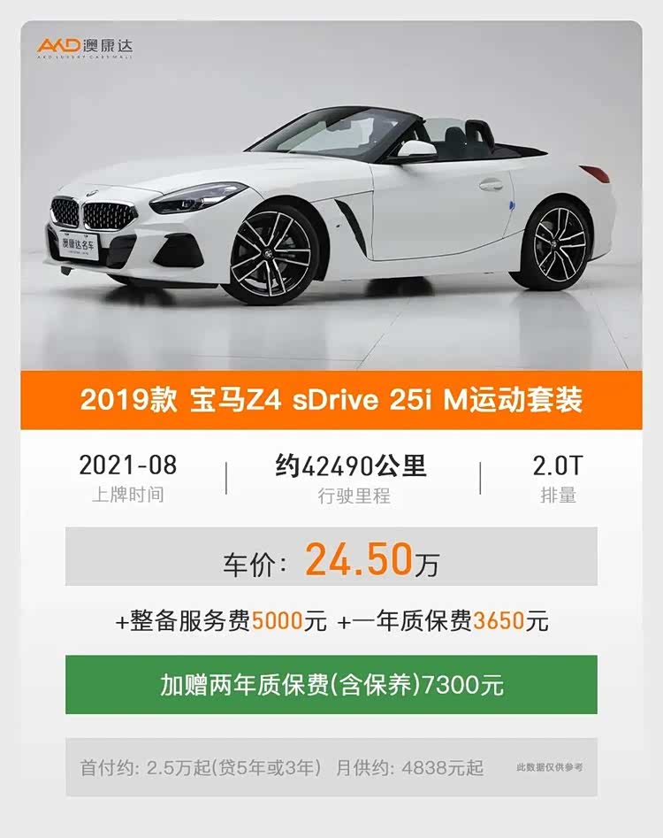 而操控层面,Z4保持了宝马一贯的精准转向和扎实底盘质感,虽不是极致的驾驶机器,但它是能兼顾日常用车的“全能手”,再加上敞篷跑车这一个性,真的很难让人不爱上它!像这辆2021年上牌的Z4,行驶约4.2万公里,现在的二手车价不到25万,用一台普通B级车的价格就能拥有一台宝马敞篷跑车,这难道不是真香吗?!