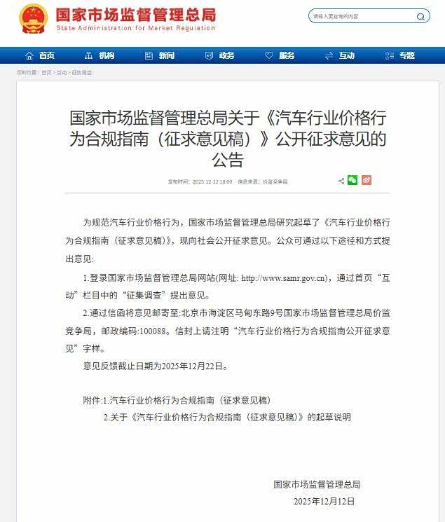 近日,国家市场监督管理总局发布《汽车行业价格行为合规指南(征求意见稿)》,《指南》针对汽车行业价格行为划定多条“红线”,其核心要求可归纳为五个方面。
