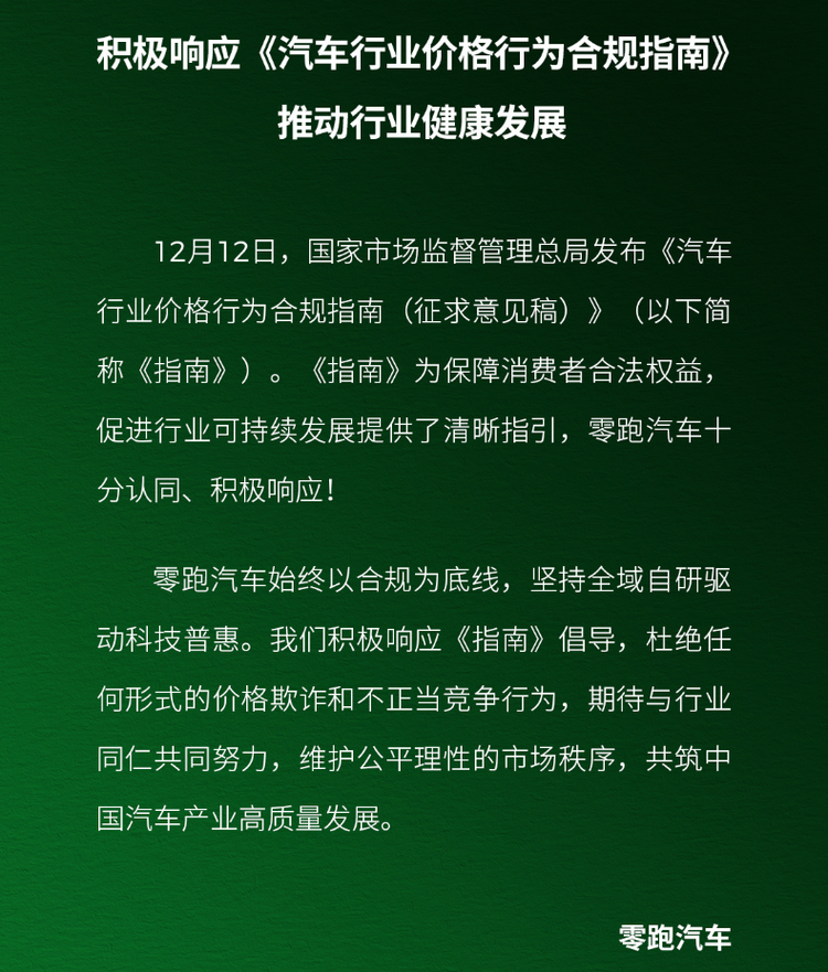 该《指南》发布之后,零跑、吉利、长城、长安、小鹏、北汽、比亚迪等车企已表态支持。