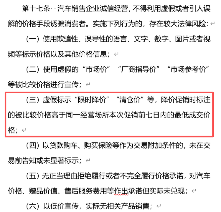 例如某车企明确限时降价至本月月底,但下个月还是这个价,甚至更便宜了!这种令人厌恶的促销方式将得到杜绝。