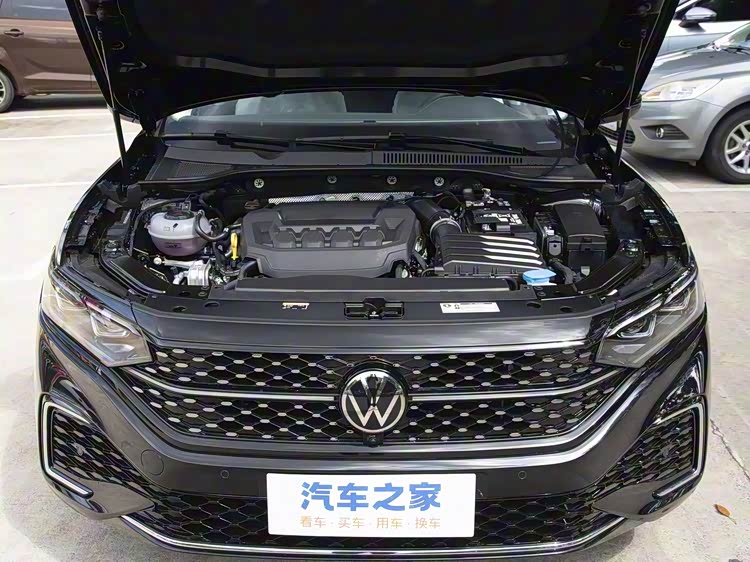 车尾部分,贯穿式LED尾灯成了全系标配,夜晚点亮后辨识度很高,搭配镀铬装饰条和PASSAT字母标识,档次感提升明显。另外,高配车型还配备了尊迎礼宾光影地毯灯,开关门时自动亮起,仪式感拉满,这点在同级别车型里确实少见。