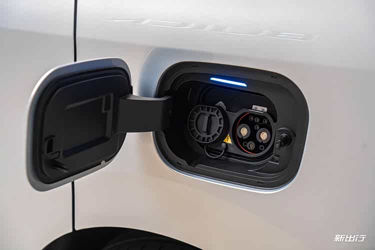 充电口方面,此次实拍的为插混版本车型,因此充电口放置在了主驾一侧的后翼子板处,而加油口则放在了副驾一侧的后翼子板处。
