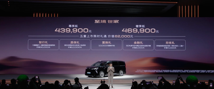 12 月 5 日,别克至境世家正式上市,推出两款车型,售价 43.99-46.99 万元。