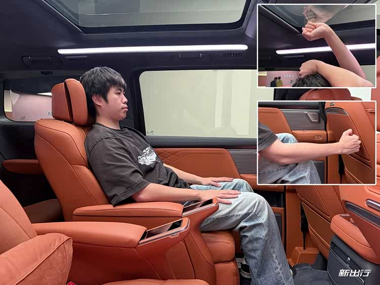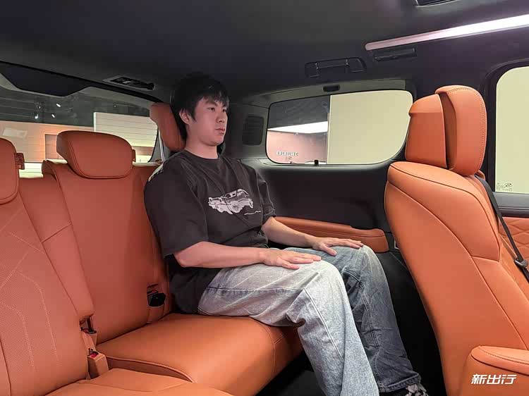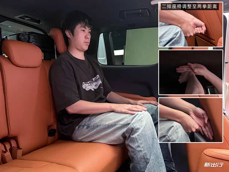 并且前排维持我正常驾乘姿态,二排保留两拳腿部空间的情况下,第三排依旧比较舒适,腿部空间仍有一拳一掌的空间,头部会稍微比较直立,空间为一拳四指左右的空间。