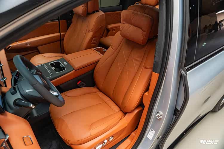 前排座椅采用 Nappa 真皮包裹,内部发泡层加入悬浮层设计,兼顾柔软度与支撑性,久坐不易疲劳。同时,通风、加热、按摩功能一应俱全。