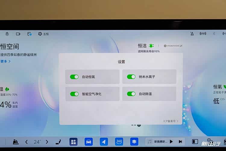 健康配置是此次至境世家的核心亮点,搭载了车内外空气质量传感器、抗敏抗病毒 CN95 高效滤网、nanoeTMX 等硬件,构建智能洁净客舱闭环控制系统,可实现抗菌杀毒、除味除尘、保湿等效果。