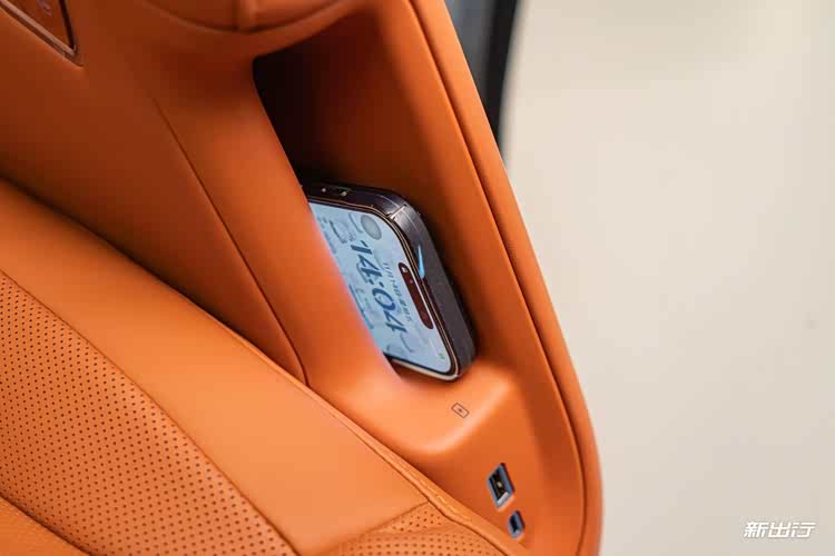 二排座椅外侧下方还设有双充电接口与无线充电面板,充电生态十分方便。