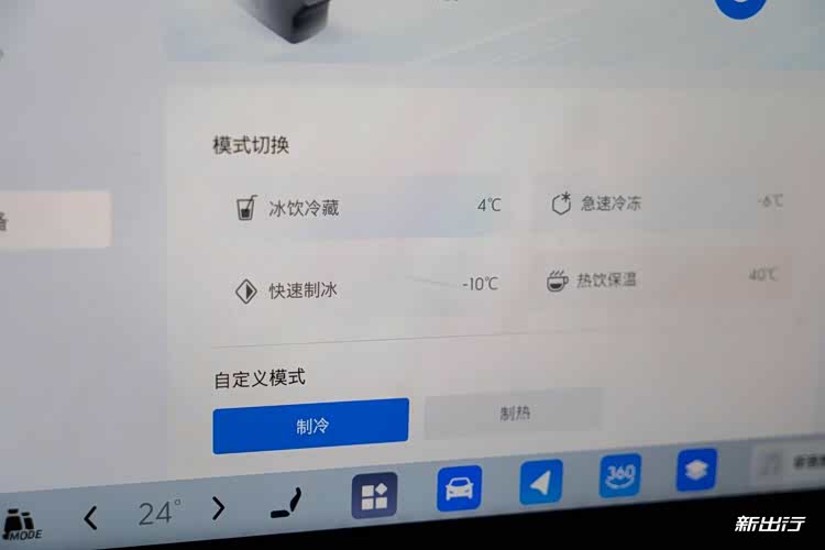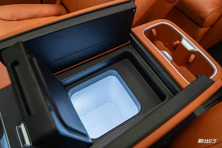 在扶手箱内还集成 - 10°-50° 的车载冰箱,但该冰箱并非是双开设计,仅能从扶手箱处开启,并且容积比较有限,约容纳 6 瓶水左右。
