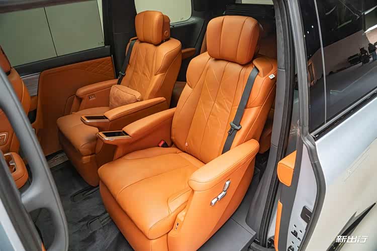 进到车内,迎面而来的则是两张独立的航空座椅,同样支持通风、加热、按摩,以及配备有多姿态零重力模式在不影响前后乘客的状态下,自适应空间调节零重力姿态。并且二排座椅的安全带放置在了座椅上。