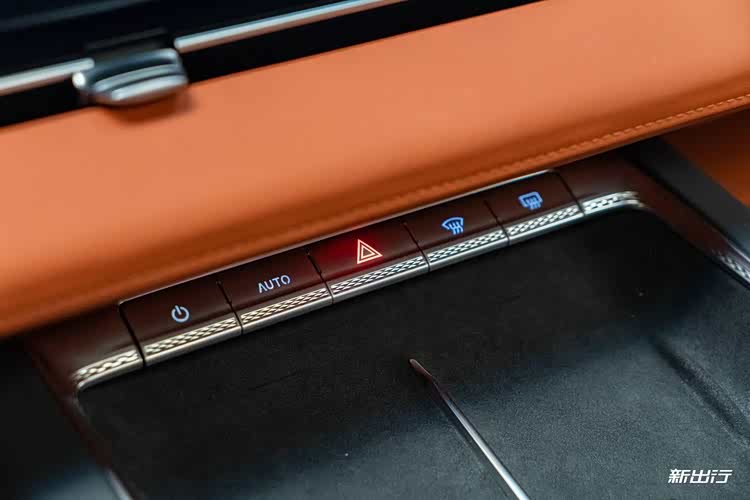 简约风格的扶手区域,最前方设有空调调节、双闪、下电等实体按键,操作便捷;